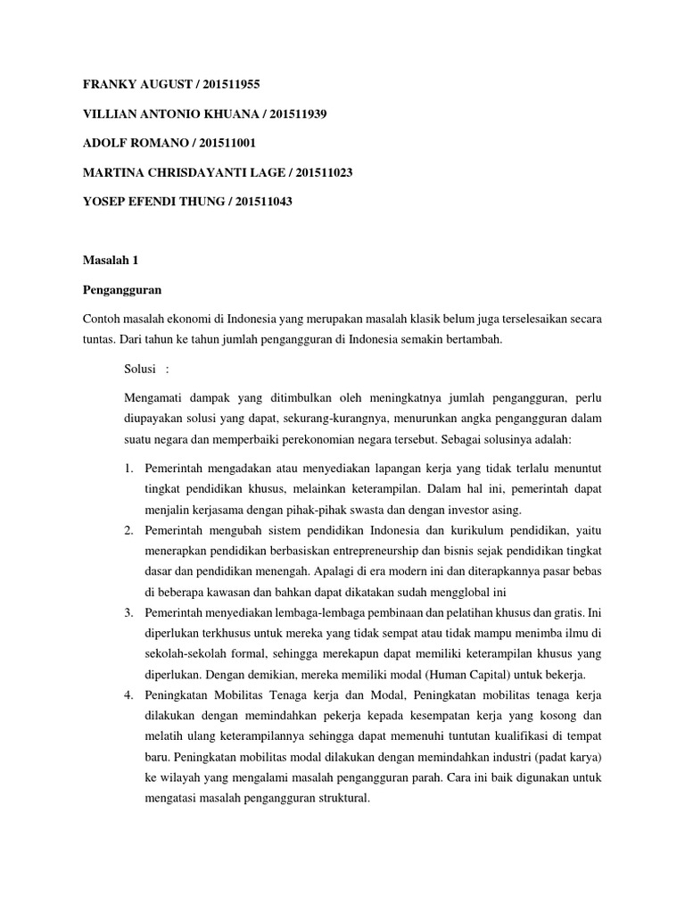 Pertumbuhan ekonomi negara berkembang seperti indonesia sering terkendala masalah modal dan investasi. 10 contoh permasalahan ekonomi mikro di indonesia beserta solusinya 10 contoh permasalahan ekonomi mikro di indonesia beserta cara mengatasinya. Pertumbuhan ekonomi dapat dilihat melalui tingkat produksi barang dan jasa yang dapat dihasilkan selama satu periode tertentu. Sebagai salah satu negara dengan perekonomian yang patut diperhitungkan di asean indonesia mampu bertahan di tengah krisis ekonomi akibat covid 19. Baik dalam ruang lingkup pergaulan di sekolah keluarga sampai pada segmen yang berhubungan dengan sara seperti agama arti suku makna ras dan lain sebaginya. Pertama harga dasar dan harga tinggi kedua kenaikan harga bbm ketiga masalah monopoli dan lain lain.