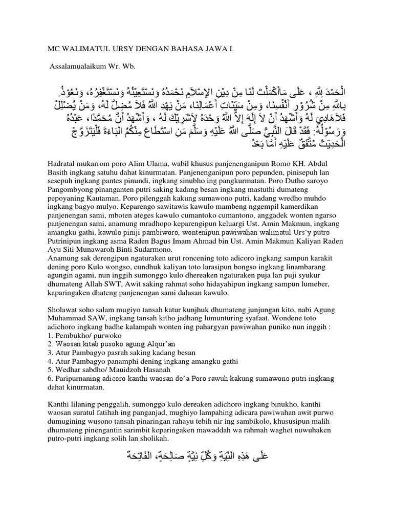 Contoh mc bahasa jawa. Contoh teks pembawa acara mc bahasa jawa singkat microsoft office bahasa jawa pidato teks mc by kak alif sebagai orang jawa yang hidup di kampung memang tak lepas dari kegiatan rutinan yang diadakan setiap bulan bahkan setiap minggu sekali dimana program tersebut memang sudah berjalan sejak dari dulu. Contoh teks naskah mc bahasa jawa untuk pengajian akbar pada kesempatan kali ini saya akan memberikan 2 contoh teks naskah mc bahasa jawa untuk acara pengajian akbar mungkin bahi kalian yang sedang ada acara pengajian akbar dan anda di tunjuk untuk menjadi pranatacara atau banyak disebut mc dan masih bingung bagaimana cara menjadi mc dalam acara pengajian akbar dalam bahasa jawa. Contoh mc yasinan bahasa jawa saiful muhlis december 07 2016 pidato 0 comments dumateng poro alim poro kyai sesepuh lan pinisepuh engkang kulo dereaken dumateng poro ibu ibu muslimat lan sahabat fatayat engkang. Contoh teks pembawa acara dalam bahasa jawa. Dan sebagai bahan masukan bagi anda yang saat ini sedang mencari teks mc bahasa jawa berikut ini saya sajikan beberapa contohnya yang diharapkan dapat memberikan anda masukan berguna dalam rangka mempersiapkan diri untuk memandu suatu acara dengan menggunakan bahasa jawa. Karena narkoba akan merubah hidup kita ke arah yang lebih buruk jika kita tidak membentengi diri dari sekarang.