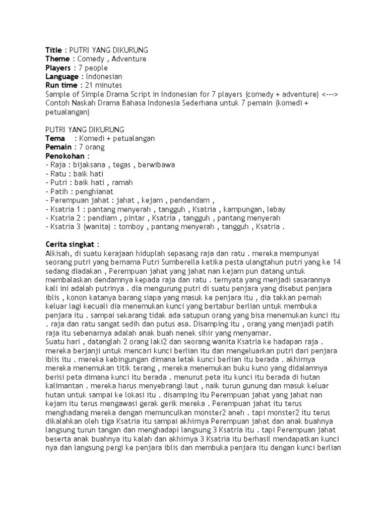 Posting pada uncategorized ditag contoh drama tentang ekonomi contoh naskah 3 paragraf contoh naskah drama 2 orang contoh naskah drama 5 orang tentang pendidikan singkat contoh naskah drama bahasa jawa 8 orang contoh naskah drama panjang 6 orang contoh naskah drama panjang untuk 10 orang contoh naskah drama satu babak pendek contoh. Tokoh dalam drama ini memiliki karakter yang berbeda beda dan mempunyai peran tertentu yang membangun cerita ini secara keseluruhan yang utuh. Laporan kegiatan identifikasi lumut. Kali ini kita akan memberikan contoh naskah drama singkat tentang persahabatan yang dimainkan oleh 7 orang pemain. Naskah drama cerita rakyat untuk 7 orang. Raden putra kaya raya dan berkuasa.