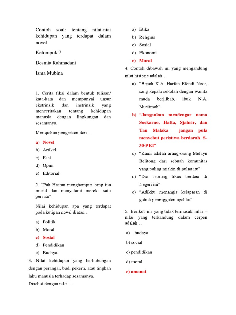 Tindakan individu atau kelompok menciptakan kehidupan sosial yang harmonis karena adanya nilai sosial. Cerpen dan novel adalah salah satu karya sastra. Ia tak peduli dengan suara adzan lebih senang mengencangkan suara tape agar tak terdengar suara adzan padahal seharusnya ia mendengar dan menjawab adzan dan segera menunaikan ibadah salat. Ciri ciri nilai sosial yaitu sebagai berikut. Seringkali bapak atau ibu guru menugaskan kepada siswa siswinya untuk mencari nilai nilai yang. Diterapkan melalui suatu proses interaksi antar manusia secara intensif dan bukan tidak dibawa sejak lahir.