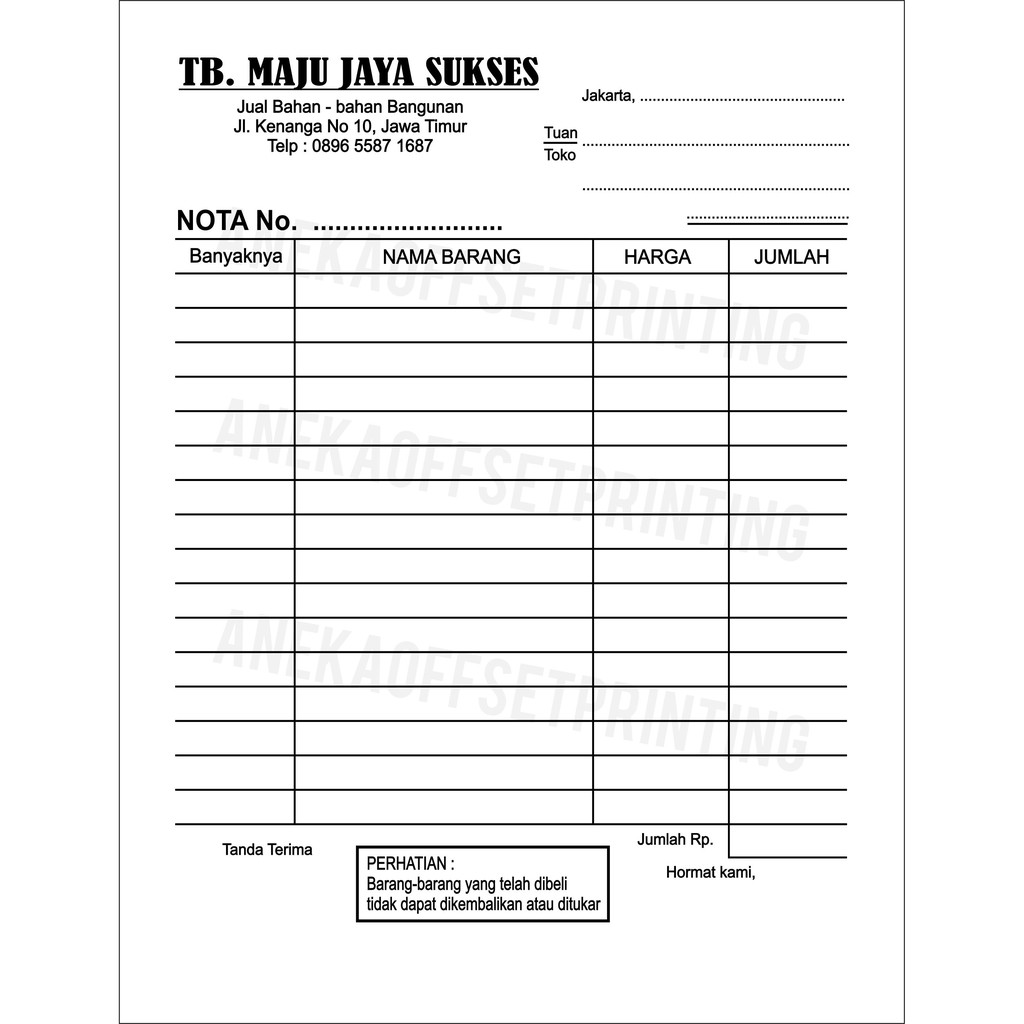 Contoh Nota Toko Sederhana Doc