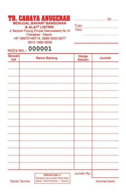Contoh nota toko bangunan. Free download secara gratis file wor doc nya. Contoh nota penjualan toko bahan bangunan. Isinya adalah berupa barang dan total harga yang telah kita belanjakan. Tapi apakah sobat tahu bahwa nota juga memilik banyak jenis dan semuanya tergantung. Toko merupakan tempat menjual segala macam bahan atau benda baik itu berupa bahan bangunan toko sembako ataupun apotik dan lainnya. Selanjutnya iallah bentuk desain nota penjualan toko bahan bagunan bentuk nota yang seperti ini sudah umum dipergunakan oleh beberapa toko penyedia bahan bangunan.