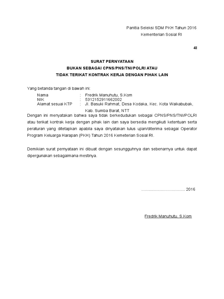 Sebanyak 30 orang pegawai negeri sipil pns dan 34 orang tenaga honorer di dinas perhubungan lampung utara menandatangani pakta integritas jumat 149. Contoh pakta integritas pns terbaru 192000 download info pakta integritas pns pakta integritas menyediakan saranamedia bagi pemerintah perusahaan swasta dan masyarakat untuk mencegah terjadinya korupsi kolusi dan nepotisme dalam sistem pemerintahan terutama dalam kontrak kontrak pemerintah public contracting.