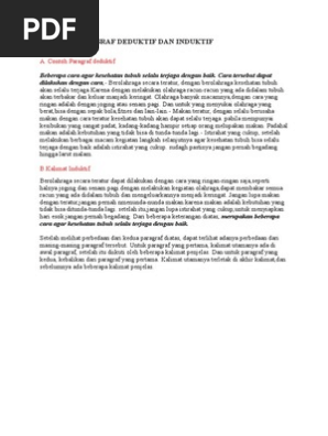 Contoh paragraf deduktif induktif. Untuk lebih sederhananya paragraf induktif yaitu kalimat utamannya berada di akhir dan kalimat penjelas ada di awal. Paragraf ini umumnya diawali dengan pernyataan yang bersifat umum kemudian dilengkapi dengan penjelasan yang khusus yang berupa contoh rincian khusus bukti bukti dan lain sebagainya. Paragraf induktif memiliki pola paragraf yang mulai dari. Tidak hanya contohnya saja yang akan kita sajikan melainkan juga pengertian ciri ciri dan jenis dari 3 paragraf ini. Paragraf ini diawali dengan pernyataan yang bersifat umum yang kemudian dilengkapi oleh beberapa penjelasan penjelasan khusus yang berupa contoh contoh rincian khusus bukti dan lain sebagainya. Pada sebuah paragraf biasanya mempunyai suatu susunan yang diawali dengan kalimat utama kemudian akan disusul dengan kalimat pendukung atau penjelasannya.