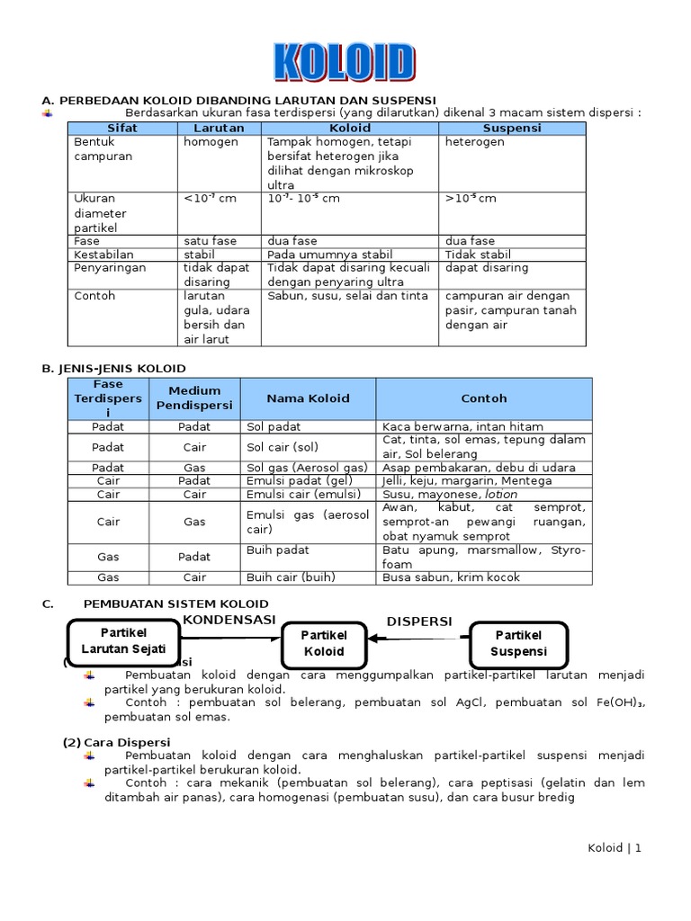 Demikian ulasan mengenai cara pembuatan koloid yang terdiri dari. Reaksi hidrolisis reaksi dekomposisi rangkap reaksi pergantian perlarut dan reaksi redoks. 3h 2 sg as 2 o 3 aq as 2 s 3 s 3h 2 ol selain dengan cara cara di atas koloid ada yang terbentuk secara alamiah misalnya lumpur getah karet dan getah pohon nangka. Pembuatan koloid dengan cara kondensasi adalah dengan mengubah partikel partikel larutan yang terdiri dari molekul molekul atau ion ion menjadi partikel koloid.