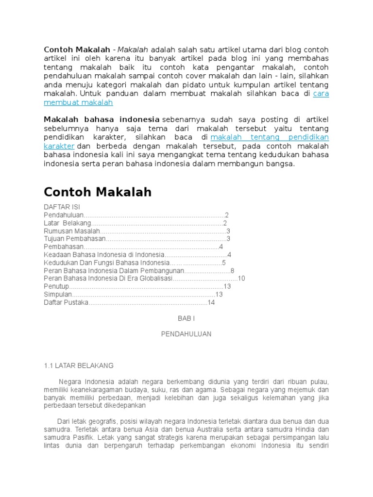 Agar tidak bingung dan lebih memudahkan dalam mengerjakannya. Pembaca juga akan menemukan apa dan mengapa penelitian dilakukan oleh sang penulis. Cara membuat pendahuluan makalah contoh dan isi pendahuluan akan dijelaskan secara rinci apa saja isi dan bentuknya agar lebih mudah diipahami bagi siapa saja yang ingin membuat makalah khususnya pada bagian pendahuluannyasering kali seorang pelajar salah dalam memahami arti dari pendahuluan makalah yang menganggap bahwa bentuknya hampir sama dengan kata pengantar sebuah buku. Sebelumnya kita juga sudah pernah membahas daftar isi kata pengantar dan contoh susunan makalah yang baik dan. Pada setiap bagian bagian tersebut memiliki beberapa bagian lagi akan tetapi pada artikel kali ini saya tidak membahas semuanya secara detail namun lebih fokus pada bagian pendahuluan makalah dan untuk bagian bagian lain silahkan lihat pada beberapa contoh makalah yang sudah saya posting sebelumnya yang dapat anda baca di contoh makalah bahasa indonesia tentang narkoba dan pada contoh. Contoh makalah saat di perkuliahan dalam menulis makalah akan dituntut benar dan mungkin bisa dibilang sempurna.
