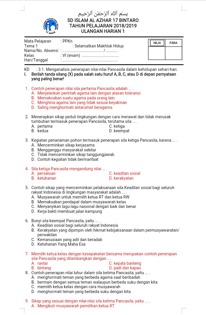 Seputar Pendidikan Soal Ulangan Kelas 6 Tema 1