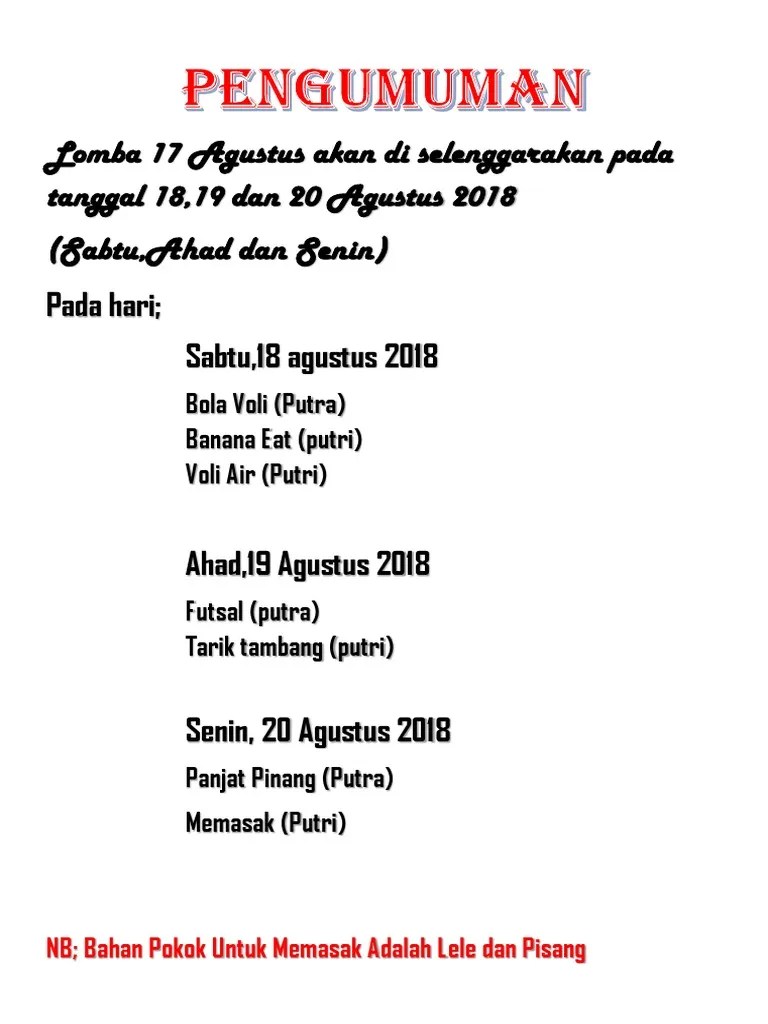 Contoh Pengumuman Lomba 17 Agustus Bahasa Inggris D Colomadu