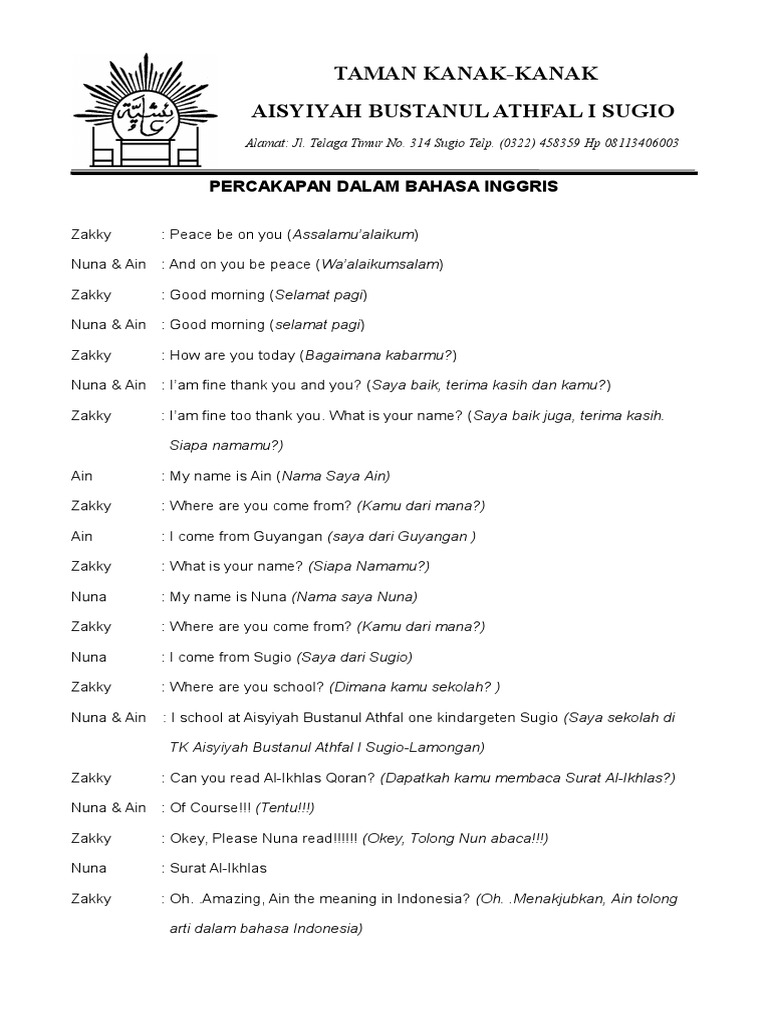 Contoh percakapan bahasa indonesia. Percakapan bahasa indonesia percakapan atau dialog ialah sebuah materi dasar yang wajib dikuasai oleh seorang siswa. Nah itulah contoh percakapan bahasa inggris dan terjemahannya yang bisa sobat jadikan bahan latihan belajar percakapan. Contoh percakapan kerap kali digunakan untuk memperdalam ketrampilan para siswa untuk melakukan sebuah dialog percakapan. Kata sebelumnya merupakan topik atau subyek. Kita sebenarnya sudah belajar bahasa inggris sejak kecil bahkan sekarang anak tk pun sudah ada mulai. Bahasa jepang adalah salah satu bahasa yang banyak digunakan dalam kepentingan komunikasi internasional seperti pbb.