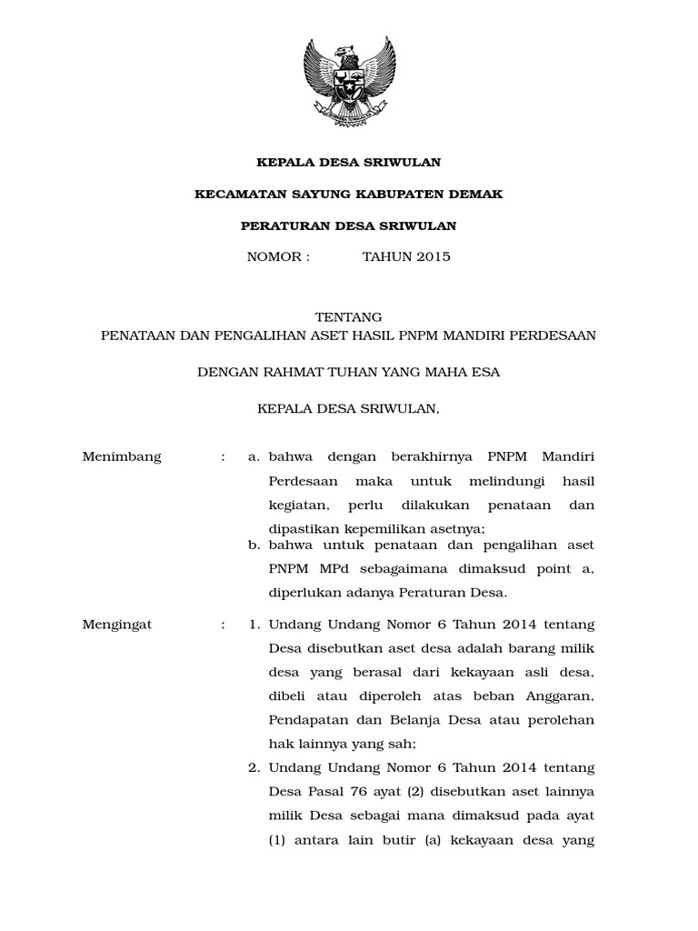 Peraturan desa perdes nomor 10 tahun 2016 tentang pengelolaan aset desa desa panggungharjo kecamatan sewon kabupaten bantul. Mengembangkan kekayaan dan aset desa. Semoga format pdf dan doc word yang kami berikan tersebut dapat bermanfaat untuk anda. Khususnya bagi pihak pihak yang berkaitan dengan penyusunan draft perdes pasar ini. Definisi aset desa dan inventaris desa. Demikian ulasan artikel yang berjudul pasar desa adalah.