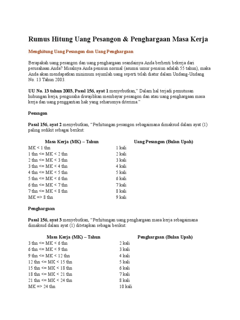 Contoh perhitungan uang pisah bagi karyawan yang mengundurkan diri. Uang pisah ini dapat diartikan sebagai uang penghargaan atas loyalitas bantuan dan pengabdian yang diberikan karyawan selama masa kerja tertentu. Hal ini diatur dalam pasal 162 ayat 2 yang menyatakan bahwa bagi pekerjaburuh yang mengundurkan diri atas kemauan sendiri yang tugas dan fungsinya tidak mewakili kepentingan pengusaha secara langsung selain menerima uang penggantian hak diberikan uang pisah yang besarnya dan pelaksanaannya diatur dalam perjanjian kerja peraturan perusahaan atau perjanjian kerja bersama. Uang pisah ini diberikan kepada karyawan yang dilakukan pemutusan hubungan kerja karna alasan mengundurkan diri atau karena kesalahan berat. Contoh perhitungan uang pisah bagi karyawan yang mengundurkan diri. Bagi karyawan yang mengundurkan diri atas kemauan sendiri resign sebagaimana diatur dalam pasal 162 ayat 1 uu ketenagakerjaan pekerja hanya berhak atas uang penggantian hak uphapa saja uph tersebut terinci dalam pasal 156 ayat 4 uu ketenagakerjaan. Mungkin di antara kita ada yang sedang bingung bagaimana cara menghitung uang pisah saat mengundurkan diri alias resign dari pekerjaan.