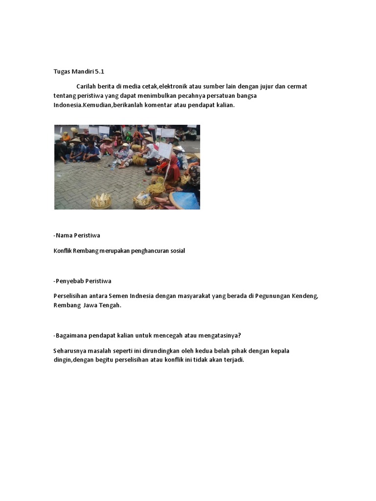 Contoh peristiwa yang dapat menimbulkan pecahnya persatuan bangsa indonesia. Wilayah nkri yang luas dan subur merupakan karunia tuhan yang maha esa yang diberikan kepada bangsa indonesia. Peristiwa yang menimbulkan pecahnya persatuan bangsa indonesia sebagai negara yang berada pada di antara dua samudera besar membuat indonesia menjadi negara yang beriklim tropis. Contoh berita peristiwa yang dapat menimbulkan pecahnya persatuan bangsa indonesia adalah kelompok separatis bersenjata di papua. Itulah 4 penyebab perang sampit yang terjadi pada tahun 2001. Perbedaan yang ada akan menjadi indah jika terjadi kerukunan bahkan menjadi sebuah kebanggaan karena merupakan salah satu kekayaan bangsa. Kemudian berikanlah komentar atau pendapat kalian.