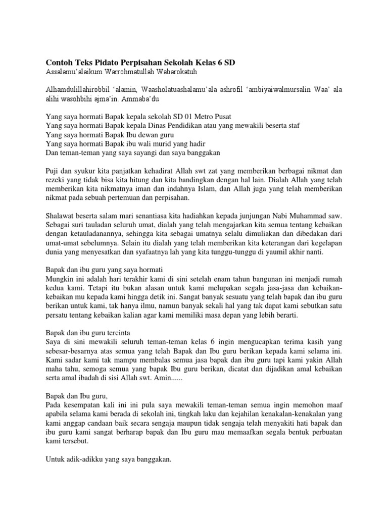 Untuk lebih memberikan kesan yang dalam pada hari perpisahan di sekolah pidato dapat ditambahi dengan untaian kata puisi yang singkat dan menarik. Ya pidato merupakan suatu ucapan dengan susunan yang baik dan sopan untuk menyempaikan sesuatu hal kepada khalayak. Pidato perpisahan singkat dan mudah di hafal. Contoh pidato pergaulan bebas. Anda dapat menggunakan pidato ini selama retret sekolah atau bahkan menambahkan kata kata jika masih ada. Berikut ini ada contoh teks pidato yang mengharukan.