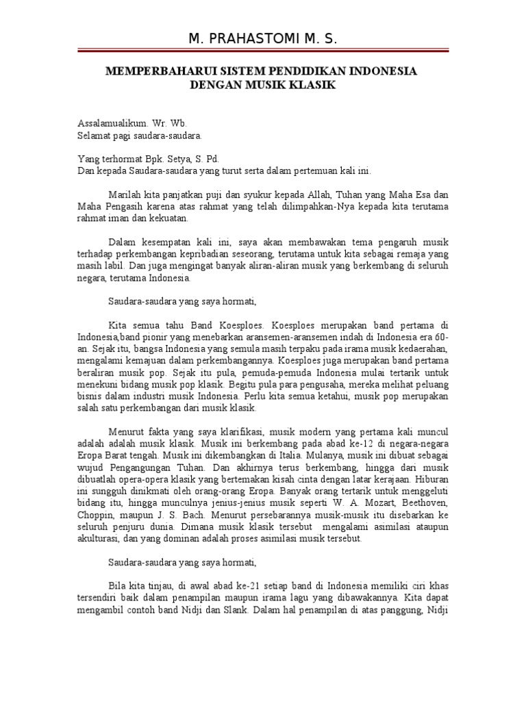 Para hadirin yang saya hormati. Pidato merupakan sebuah kegiatan yang mempunyai tujuan tertentu untuk memberikan sebuah ide atau gagasan kepada beberapa orang yang mendengarkanya. Contoh pidato dengan tema pendidikan bahasa indonesia pidato memang kerap kali kita butuhkan dalam kehidupan apa lagi jika kita merupakan orang yang memiliki jabatan yang penting. Sebelumnya kita telah mengetahui contoh pidato singkat tentang pendidikan karakter di mana contoh pidato dalam artikel tersebut berisi betapa pentingnya pendidikan karakterartikel kali ini juga akan menyajikan contoh pidato tentang pendidikan khususnya pendidikan moralseperti hanya pidato lainnya contoh pidato kali ini juga menggunakan beberapa contoh kalimat pernyataan dalam bahasa. Contoh pidato persuasif tentang tayangan televisi. Berikut ini merupakan contoh pidato persuasif yang berjudul tayangan televisi dan tantangan pendidikan di mana isinya mengajak kepada orang yang mendengarkan mengetahui dampak tayangan televisi terhadap pendidikan anak anak.