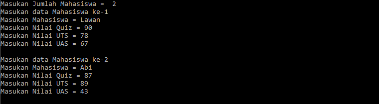 Ada beberapa metode yang dapat kita gunakan dalam menentukan nilai mahasiswa atau siswa menggunakan bahasa pemrograman java. Dalam kasus diatas kita membuat sebuah kelas bernama totalangka. Arraylist pada bahasa pemrograman java merupakan salah satu collection yang bisa kalian gunakan untuk menampilkan daftar atau list nilaivalue yang bersifat dinamis dan juga dapat dimodifikasi ukuran pada arraylist dapat kita ubah dengan cara menambahkan add atau menghapusnya removetidak seperti array pada umumnya pada arraylist kita tidak. Sebagai studi kasus misalnya disini kita sebagai programmer diminta untuk membuat program yang mampu menjumlahkan angka 1 hingga 100. Class mahasiswamahasiswa public void tampilmahasiswa throws ioexceptionint bnim1nim2nim3nim4nim5umur1umur2umur3umur4umur5. 3 contoh array dalam program java.