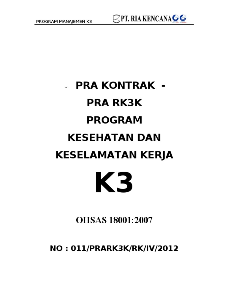 Rencana K3 Kontrak Rk3k Bpsdm Pu Go Id Rencana K3