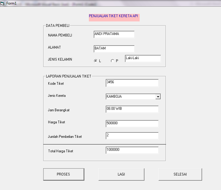 Salam sehat salam merdeka kawan. Berada di semester 2 saya mendapat praktikum di lab sistem informasi. Silahkan di download dan kembangkan lagi. Oke gengs ini contoh gambar yang sudah jadinya. Membuat program penjualan tiket pesawat visual basic. Penjualan tiket kereta api kode pada kolom jenis kereta.