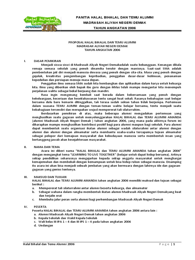 Contoh proposal halal bi halal. Halal bi halal taburkan maaf sucikan hati panitia. Besar harapan kami untuk bapak ibu yang dengan senang hati mendukung dan ikut berpartisipasi membantu penambahan dana demi kelancaran acara kami. Untuk mengisi dan memeriahkan hari raya idhul fitri 1432 h. Latar belakang latar belakang proposal kegiatan ini berisi dasar atau alasan suatu kegiatan perlu dilakukan. Tujuan tujuan proposal kegiatan adalah hasil yang diharapkan dari kegiatan yang diadakan 4. 26 november 2016 by hipelmat teunom in proposal tak berkategori.