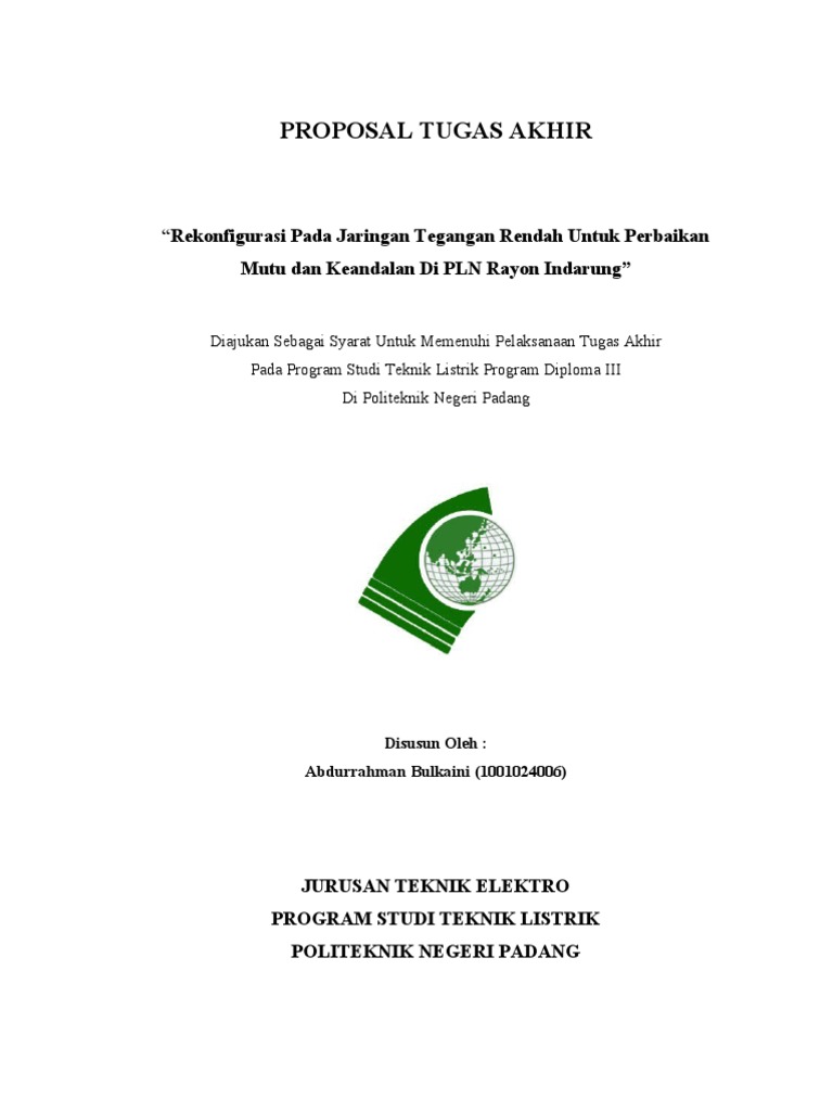 Teknik telekomunikasi dan multimedia 3. Workshop penulisan proposal tugas akhir mahasiswa mengikuti workshop penulisan proposal tugas akhir yang akan dijadwalkan oleh prodi. Sri muryati sst nip. Contoh proposal tugas akhir teknik elektro 2124 admin elektro lain plc postigan kali ini akan kita pelajari cara menyusun proposal tugas akhir sebagai syarat kelulusan materi berisi tentang teknik elektro disini yang penting untuk disampaikan adalah kerangka proposal tersebut isinya saya gabungkan dengan beberapa proposal hanya sebagai contoh saja. Teknik elektro fakultas teknologi industri dan kebumian universitas sains dan teknologi jayapura 2011 daftar isi. Kumpulan judul skripsi teknik elektro.