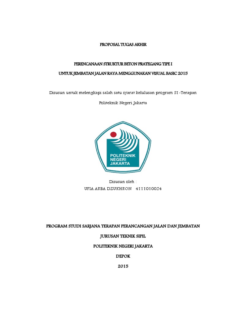 Contoh proposal tugas akhir teknik sipil jalan. Berawal dari permasalahan ini kami sebagai penyedia jasa referensi ingin menawarkan anda berbagai contoh proposal tugas akhir teknik sipil yang bisa anda dapatkan melalui situs kami. Lengkap berisi matericontoh kumpulan tugas akhir teknik sipil meliputi struktur gedung jalan dan jembatan bendungan penelitian beton irigasi manajemen konstruksi rekayasa rel. Skripsi teknik sipil jalan raya memang cukup populer di antara mahasiswa maupun dosen teknik sipil. Kami menyediakan beragam judul proposal tugas akhir teknik sipil dari perguruan tinggi terkemuka di seluruh indonesia. Oleh karenanya mahasiswa butuh referensi judul dan contoh skripsi lengkap untuk dijadikan penelitian terdahulu. Proposal pengajuan tugas akhirfadillah putri dirgahayu auto saved diunggah oleh.