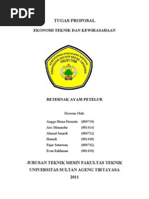 Ayam ras petelur usaha ternak ayam ras petelur untuk saat ini dan yang akan datang cukup menjanjikan karena seiring dengan pertambahan jumlah penduduk permintaan akan telur semakin bertambah. Contoh proposal ternak ayam petelur senin 04 mei 2015. 2007 untuk skala usaha 500 ekor dapat memperoleh pendapatan sebesar rp 189114500. Usaha ini cukup menguntungkan mengingat telur merupakan salah satu jenis makanan yang sering digunakan sebagai pemenuhan gizi bagi masyarakat setempat. Contoh proposal usaha budidaya ayam petelur terbaru geliat usaha peternakan di indonesia semakin hari semakin ramai diperbincangkan dan digeluti oleh peminatnya bukan hanya perorangan juga atas nama kelompok maupun kelembagaan yang bisa dijadikan sebagai mata pencaharian baru dan membuka peluang usaha baru bagi masyarakat sekitarnya. Harga pullet usia 16 minggu dari cv kami riwayat komplit faksin lengkap sertifikat doc hewan at 1 ekor rp.