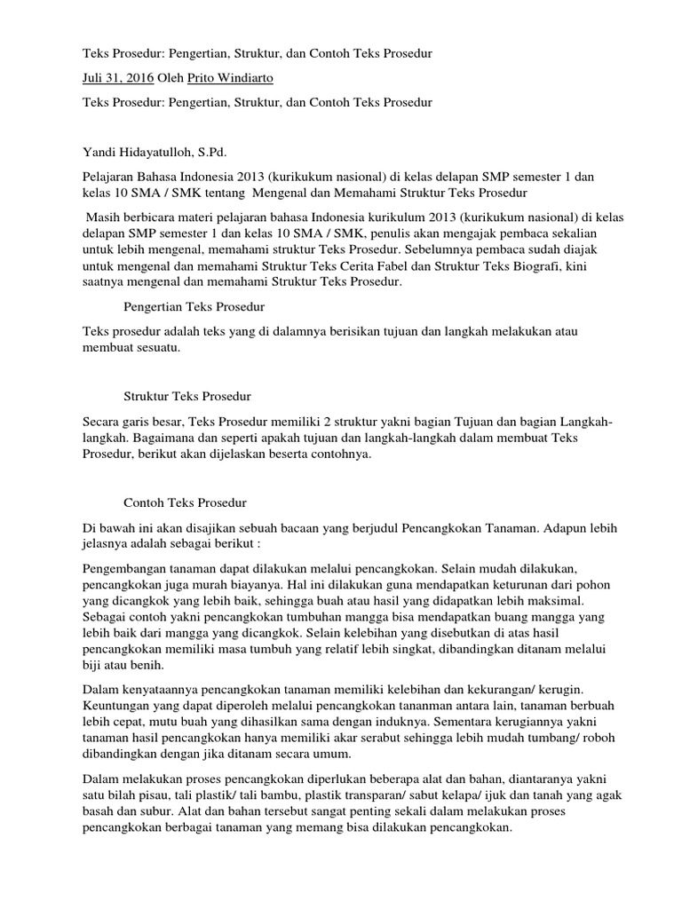 Contoh prosedur teks bahasa indonesia. Contoh teks prosedur kompleks jika membicarakan teks maka pastinya anda akan mendapatkan banyak jenis jenis teks dan jenis teks tersebut akan muncul di dalam pelajaran bahasa indonesia. Petikan kalimat berikut yang bukan merupakan contoh ciri bahasa dari teks prosedur adalah. Tambahkan 600 cc air. Tujuan dari teks prosedur ini adalah untuk membantu pembaca. 10 contoh kalimat repetisi dalam bahasa indonesia 12 contoh majas paradoks dalam kalimat bahasa indonesia. 22 contoh teks prosedur sederhana kompleks dan protokol untuk pembahasan kali ini kami akan memberikan ulasan mengenai contoh teks prosedur yang dimana dalam hal ini meliputi contoh teks prosedur sederhana kompleks dan protokol nah agar lebih dapat memahami dan mengerti simak ulasan selengkapnya dibawah ini.