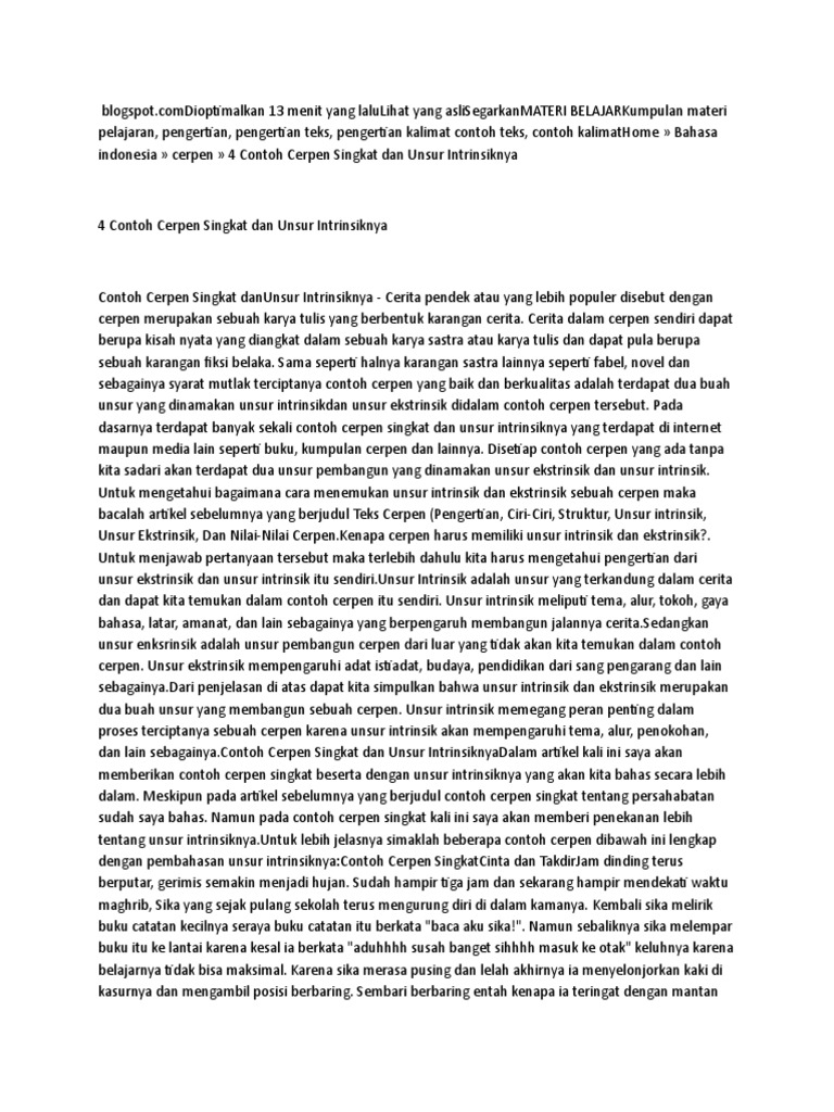 Inilah pembahasan lengkap terkait contoh naskah drama komedi beserta unsur intrinsiknya. Tipografi disebut juga ukiran bentuk puisi. Beberapa contoh cerpen sudah pernah diampilkan sebelumnya seperti contoh cerpen alur mundur contoh cerpen alur campuran contoh cerpen singkat tentang lingkungan alam contoh cerpen pendek contoh alur cerita dalam cerpen serta contoh cerpen singkat beserta strukturnyaartikel kali ini pun juga akan menayangkan contoh cerpen di mana cerpen yang ditayangkan relatif singkat kurang dari 10. Tipografi merupakan tatanan larik bait kalimat frasem kata dan bunyi untuk menghasilkan suatu bentuk. Unsur instrinsik ialah unsur unsur yang berawal dari dalam naskah atau tulisan puisi itu sendirinah untuk teman teman yang ingin membuat karya sastra berupa puisi berikut dibawah ini terdapat unsur unsur intrinsik puisi yang bisa kita pelajari guna mengerti dan memahami apa itu unsur instrinsik. Tema sense merupakan gagasan utama dari puisi baik itu yang tersirat maupun yang tersurat.
