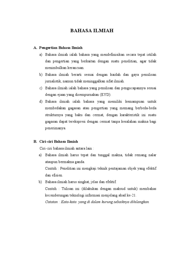 Pada bahasa ragam ilmiah bahasa bentuk luas dan ide yang disampaikan melalui bahasa itu sebagai bentuk dalam tidak dapat dipisahkan. Memerlukan orang keduateman bicara. Dimana bahasa ragam ilmiah ini diperoleh sesuai dengan sifat keilmuannya dan didasari oleh hasil pengamatan peninjauan penelitian dalam bidang tertentu disusun menurut metode pendekatan rasional pendekatan empiris dengan sistematika penulisan yang bersantun. Ciri ciri ragam bahasa lisan. Untuk itu perhatikan contoh contoh dan ciri ciri penulisan karya ilmiah berikut.