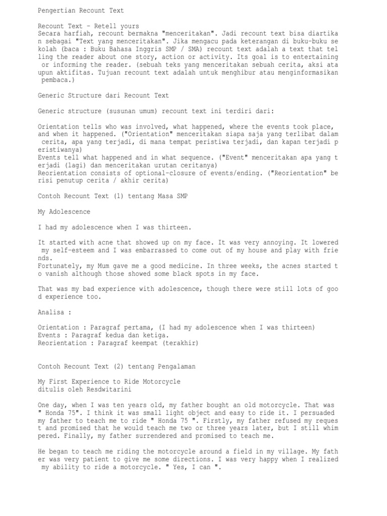 Apasih itu recount text. Contoh recount text tentang pengalaman di smp.