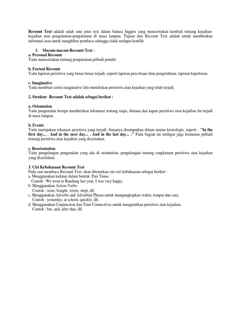 6 contoh recount text pengalaman pribadi dalam bahasa inggris dan artinya dalam bahasa inggris pengalaman pribadi sering diceritakan dalam sebuah teks yang disebut recount text. Laporan peristiwa yang benar benar terjadi fakta di masa lampau seperti laporan percobaan ilmu pengetahuan laporan kepolisian. 25 contoh recount text pendek singkat dalam bahasa inggris dan artinya biasanya sebagai latihan tugas di awal semester tahun ajaran baru para guru bahasa inggris akan memberi kita tugas untuk membuat contoh recount text yang pendek teks recount sederhana atau mungkin juga text recount pendek dan sederhana tentang liburan atau tentang pengalaman selama liburan. 6 contoh recount text tentang pengalaman pribadi yang tak terlupakan dan artinya 5 contoh recount text pengalaman hidup biography contoh recount text for senior high school dan junior highschool contoh recount text holiday idul fitri 25 contoh pengalaman pribadi pendek dan artinya dan 18 contoh narrative text. Pengalaman di sekolah atau juga bahkan pengalaman yang tak terlupakan yang membuat kita selalu mengingat kejadian tersebut. Contoh recount text tentang pengalaman pribadi.