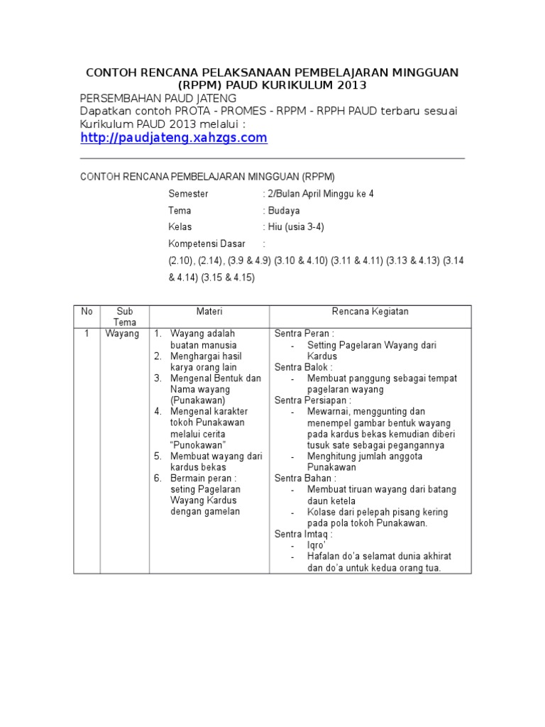 Contoh rppm paud kurikulum 2013. Thursday june 18 2015 contoh rppm dan rpph dengan model pembelajaran area di tk kurikulum 2013. Kurikulum paud 2013 pada hakikatnya merupakan seperangkat rencana yang akan dilakukan selama proses pembelajaran sehingga mutlak diperlukan oleh setiap satuan pendidikan. Sehingga rppm untuk kurikulum 2013 usia 4 5 tahun semester 1 dan 2 lengkap yaitu meliputi semua tema paud untuk rencana mingguan kelompok tk a diharapkan dapat menjadi sumber referensi. Contoh rppm paud pedoman kurikulum 2013 terbaru kami sediakan sebagai rangka dalam membantu perencana atau selaku guru paud pemangku lembaga pendidikan anak usia dini untuk membuat perencanaan pembelajaran. 5 6 tahun. Catatan niniing suratiniingsih pendidikan anak usia dini tk.