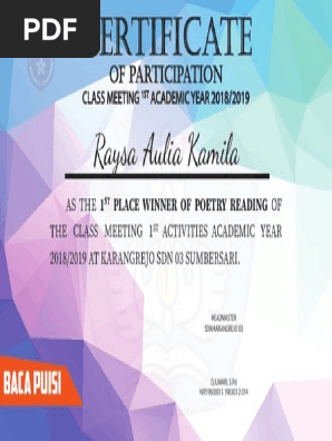 Bahasa inggris untuk dokumen resmi pastinya nggak bisa sembarangan berbeda dengan bahasa percakapan yang biasa kita pakai atau kita simak di film film. Sertifikat adalah tanda atau surat keterangan pernyataan tertulis atau tercetak dari orang yang berwenang yang dapat digunakan sebagai bukti pemilikan atau suatu kejadian.
