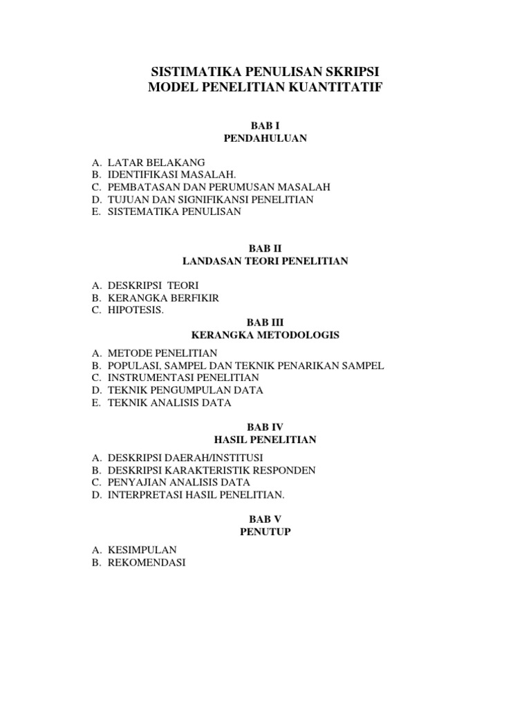 Contoh makalah pendidikan penelitian cara membuat struktur sering kita mendapatkan tugas dari guru sma dan dosen perguruan tinggiuntuk membuat makalah ini merupakan karya ilmiah yang dituangkan ke dalam bentuk tulisan untuk penjelasan bersama dengan unsur elemen pendukung karya ilmiah. Cepat atau lambat kamu pasti akan diberikan tugas untuk membuat sebuah makalahtentu saja hal ini perlu memperhatikan beberapa aspek sehingga makalah yang kamu buat terkesan tidak asal asalan dan mendapatkan nilai yang baik oleh pengoreksi. 2 contoh sistematika penulisan skripsi dan makalah lengkap contoh sistematika penulisan 1. Saya selaku penulis mengucapkan terima kasih kepada semua orang yang telah membantu dan memberikan dukungan kepada saya baik secara materi ataupun moril sehingga saya dapat menyelesaikan makalah ini dengan baik dan lancar. Penulis menyarankan kepada semua pembaca untuk mempelajari sistematika dan penulisan karya tulis ilmiah sederhana dalam membuat sebuah karya tulis. Contoh skripsi dan sistematika penulisan skripsi ini hanyalah salah satu rujukan pendukung.