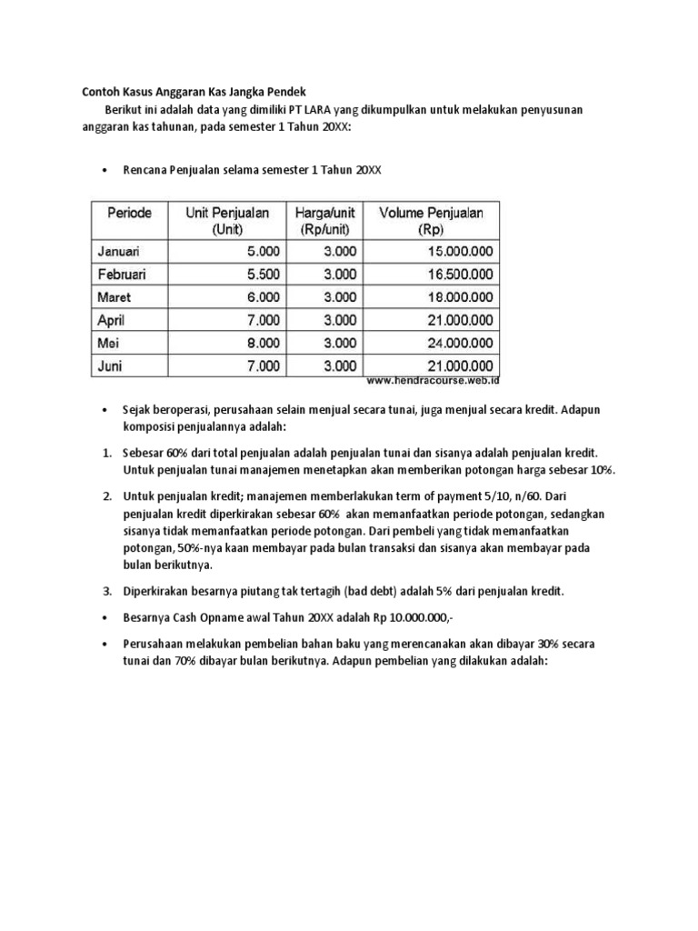 Contoh soal anggaran kas. Rencana penjualan selama semester 1 tahun 20xx. Home kas dan setara kas pengertian dan contoh kas dan setara kas in kas dan setara kas on may 30 2018 2 comments pengertian kas yaitu kas merupakan harta milik perusahaan yang sifat nya paling likuid atau paling mudah di ubah ke dalam bentuk yang lain sehingga kas disebut sebagai aktiva yang paling lancar atau likuid. Venus yang menjadi distributor kertas akan menyusun anggaran kas bulanan periode juli sd desember 2002 6 bulan dari data adalah sbb. Contoh kasus anggaran kas jangka pendek berikut ini adalah data yang dimiliki pt lara yang dikumpulkan untuk melakukan penyusunan anggaran kas tahunan pada semester 1 tahun 20xx. Anggaran biaya operasional e. Rencana penjualan selama semester 1 tahun 20xx.