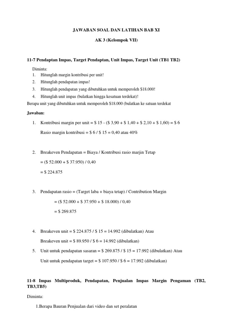 Jika harga jual perunit adalah rp. Rp 22500 per unit. Rp 13500 per unit. 1500000 biaya penyusutan mobil kijang. Berapa break even point dalam rupiah. 150 juta yang terbagi dari.