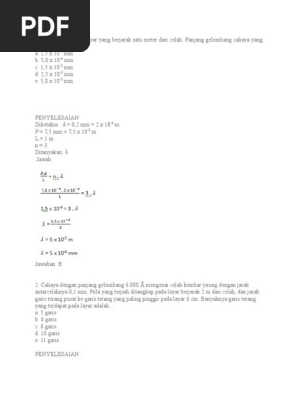 C laju cahaya ms λ panjang gelombang. Contoh soal gelombang cahaya tentang interferesnis celah ganda difraksi dan polarisasi cajhaya. Sebuah celah memiliki lebar 02 mm disinari cahaya berkas sejajar dengan panjang gelombang 5000å.