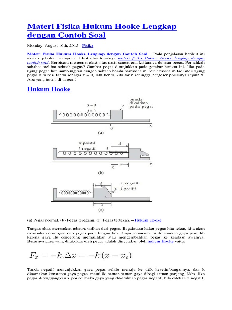 Contoh soal hukum hooke. F k. Agar anda bisa memahami hukum hooke dengan lebih baik mari simak pembahasan beberapa soal tentang elastisitas di bawah ini. Contoh soal hukum hooke. δx f w m. Pertambahan panjang total pegas adalah.