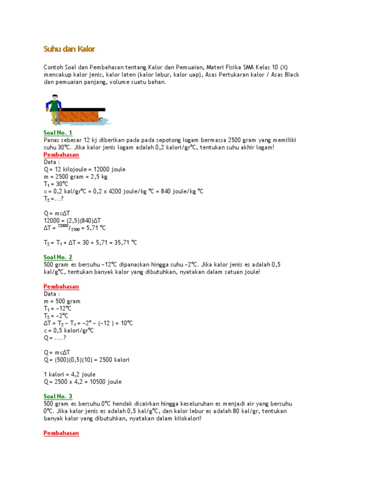 Pengertian perpindahan kapasitas jenis rumus dan contoh soal lengkap kalor adalah suatu energi yang mudah diterima dan mudah sekali dilepaskan sehingga dapat mengubah temperatur zat tersebut menjadi naik atau turun. Kalor juga bisa berpindah dari satu zat ke zat yang lain melalui medium atau perantara. Soal ipa smp kalor kelas 7 dan pembahasannya. Fahrenheit dan kelvin lengkap dengan pembahasannya. Silahkan kalian pelajari baik baik. Artikel ini menyajikan kumpulan contoh soal dan pembahasan tentang konversi satuan suhu yang meliputi skala termometer celcius.
