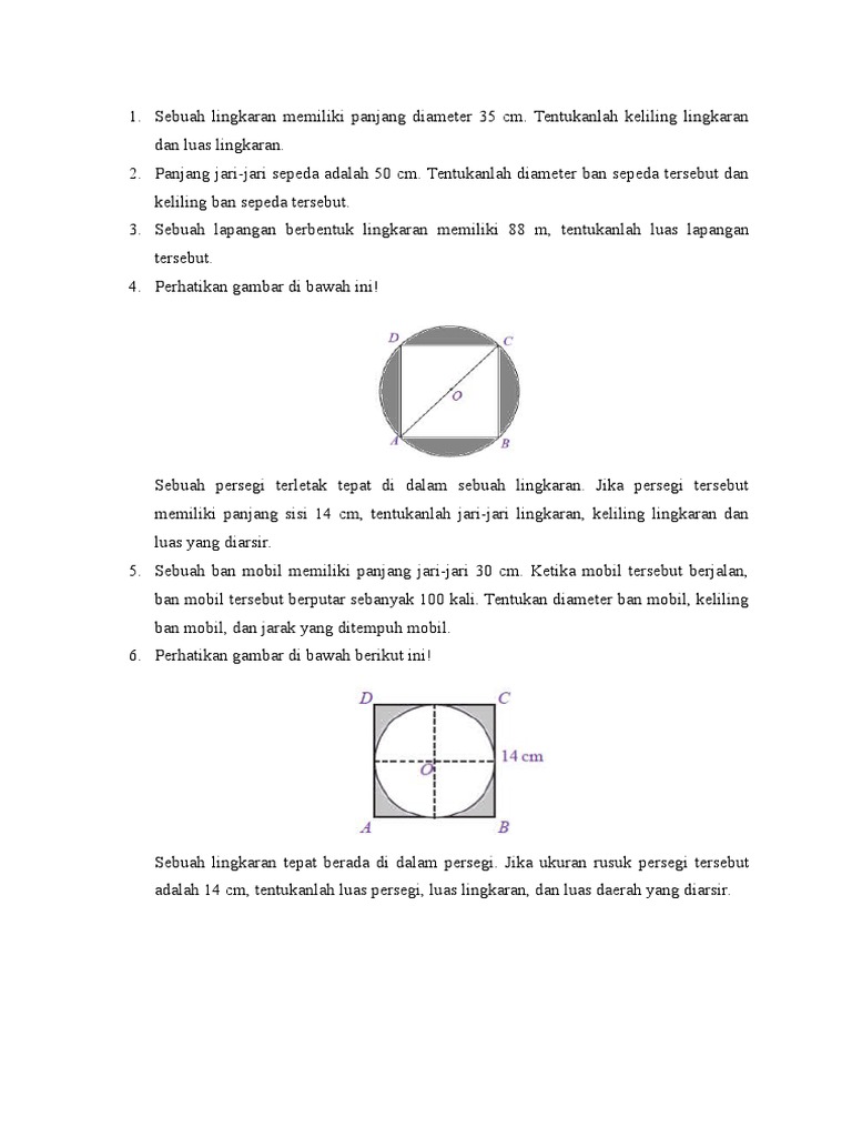 Lingkaran di atas dibagi menjadi 8 delapan daerah yang sama dengan tiga daerah yang diarsir. 1 perhatikan gambar bangun datar berikut. Dengan adanya soal ini semoga bisa membantu bapak ibu wali murid wali kelas yang membutuhkan soal luas dan keliling lingkaran untuk bahan ajar putra putri anak didik yang duduk di bangku sekolah dasar kelas 5 dan 6. Pembahasan a luas daerah yang diarsir. Soal luas dan keliling lingkaran ini terdiri dari 20 soal pilihan ganda dan 10 soal uraian. Biasanya untuk mencari luas daerah yang diarsir kita harus mengurangkannya.