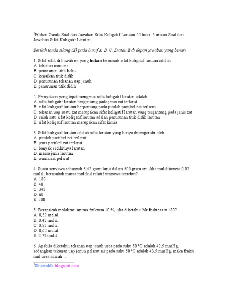 Contoh Soal Titik Didih Larutan Sifat Koligatif Larutan Elektrolit