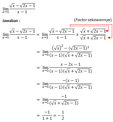 Contoh soal limit fungsi aljabar bentuk akar. Rumus trik cepat mengerjakan limit tak hingga yang ke 2 dapat digunakan untuk contoh soal limit tak hingga bentuk akar yang di mana fungsi nya dalam akar merupakan sebuah persamaan kuadrat. Contoh soal dan pembahasan limit perkalian sekawan posted by edutafsi on 18 april 2015 1241 am selain dengan metode substitusi metode pemfaktoran dan dalil lhospital kita juga dapat menentukan nilai limit dari suatu fungsi dengan menggunakan metode perkalian sekawan. Limit biasa dipakai dalam kalkulus dan cabang lainnya dari analisis matematika untuk mencari turunan dan kontinyuan. Berikut ini akan dibahas limit limit fungsi aljabar bentuk tak tentu yaitu. Limit fungsi aljabar limit bisa diartikan sebagai menuju batas sesuatu yang dekat namun tidak bisa dicapai. Dalam bahasa matematika keadaan ini adalah umum disebut limit.