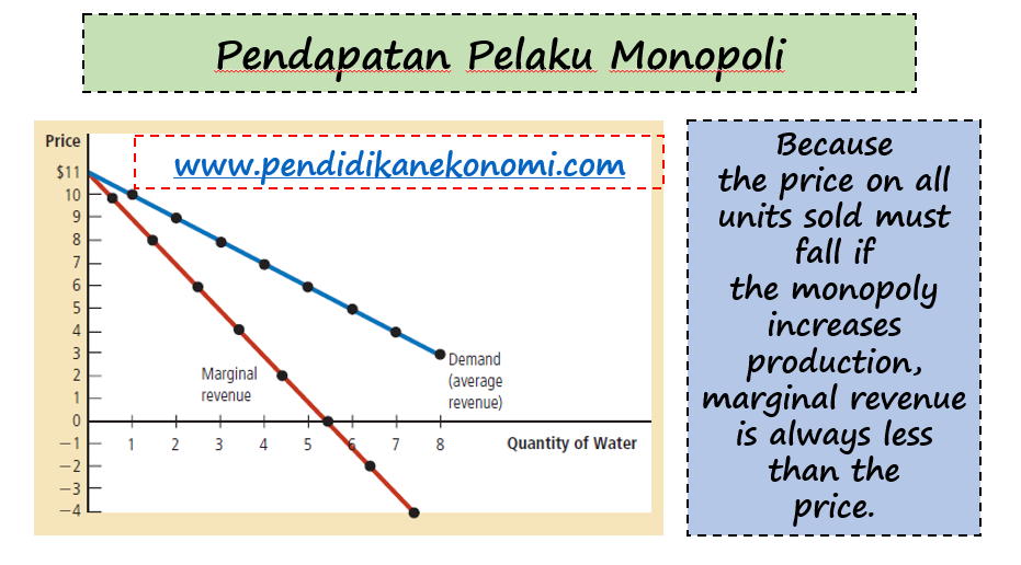 Sebuah perusahaan monopoli menghadapi permintaan. Pasar monopoli murni atau pure monopoly adalah suatu bentuk pasar yang bisa dibilang sangat berbahaya contohnya seperti pln pt kereta api dan pam.