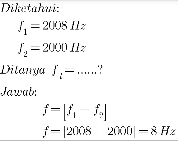 Contoh soal pelayangan bunyi. Serta soal soal untuk menguji pemahaman siswa. 1 layangan didefinisikan sebagai gejala dua bunyi keras atau dua bunyi lemah secara berurutan 1 layangan keras lemah keras atau lemah keras lemah dari gambar tampak bahwa periode pelayangan yang terjadi adalah setengah periode gelombang t maka t l ½ t atau f l ½ f maka f l ½ f 1 f 22. Gelombang dapat merambatkan energi. Layangan bunyi atau pelayangan bunyi adalah terjadinya pengerasan bunyi dan pelemahan bunyi tersebut adalah efek dari interferensi gelombang bunyi. Berikut ini adalah kumpulan berkas file guru tentang contoh soal frekuensi pelayangan bunyi yang bisa anda unduh secara gratis dengan menekan tombol download. Blog ini merupakan tugas akhir mata kuliah multimedia pembelajaran fisika.
