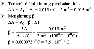 Contoh soal pemuaian luas. Sekarang perhatikanlah dan pahamilah beberapa contoh soal dan pembahasannya berikut ini. Contoh soal pemuaian luas 1. Pemuaian panas yaitu suatu perubahan benda yang bisa menjadi bertambahnya panjang lebar luas atau berubah volumenya karena terkena panas kalor. Nah pada kesempatan kali ini kita akan membahas tentang kumpulan contoh soal dan pembahasan tentang pemuaian panjang luas dan volume. Untuk lebih lengkapnya simak penjelasan dibawah ini. Pemuaian ditiap tiap benda akan berbeda tetapi juga tergantung pada suhu di sekitar dan koefisien muai atau daya muai dari benda tersebut.