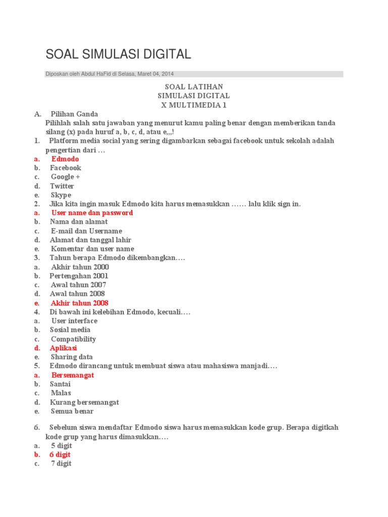 Tahun berapa edmodo dikembangkan. E mail dan username d. Contoh soal simulasi digital dan jawabannya kelas x contoh soal simulasi digital dan jawabannya apilihan ganda 1. Langsung saja kita menuju soal dari pelajaran simulasi digital itu sendiri dan tentunya saya juga sudah menyediakan jawabannya supaya teman2 semua bisa lebih mudah untuk mempelajarinya. Awal tahun 2007 d. Awal tahun 2008 e.
