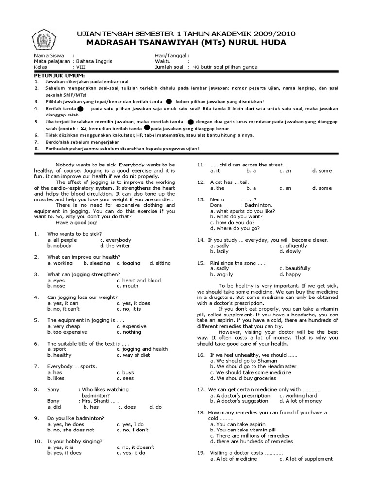 Sebelumnya kita sudah belajar apa dan bagamana contoh personal letter itu. Inilah rekomendasi tentang contoh soal sistem koordinat kelas 8 beserta jawabannyapak torik memiliki dua jenis hewan ternak yaitu bebek dan kambing. Must have to dan should adalah modals yang biasanya digunakan untuk menyatakan obligations atau kewajiban. Buku toefl self preparation course exercise 1. Personal letter atau surat pribadi adalah surat tidak resmi yang biasanya dikirimkan antar teman dan antar anggota keluarga. Soal bahasa inggris pilihan ganda reading dan kunci jawabannya meteorite impact and dinosaur extinction there is increasing evidence that the impacts of meteorites have had important effects on earth particularly in the field of biological evolution.