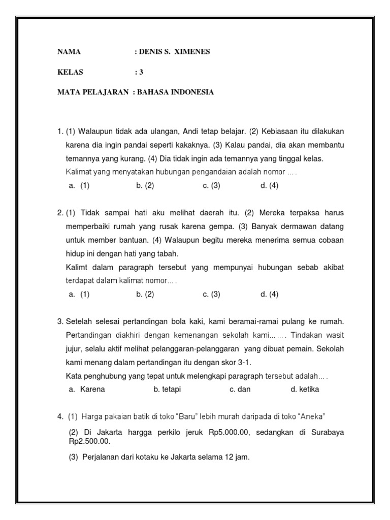 Kisi Kisi Soal Dan Kunci Jawaban Bahasa Indonesia Smp Kelas