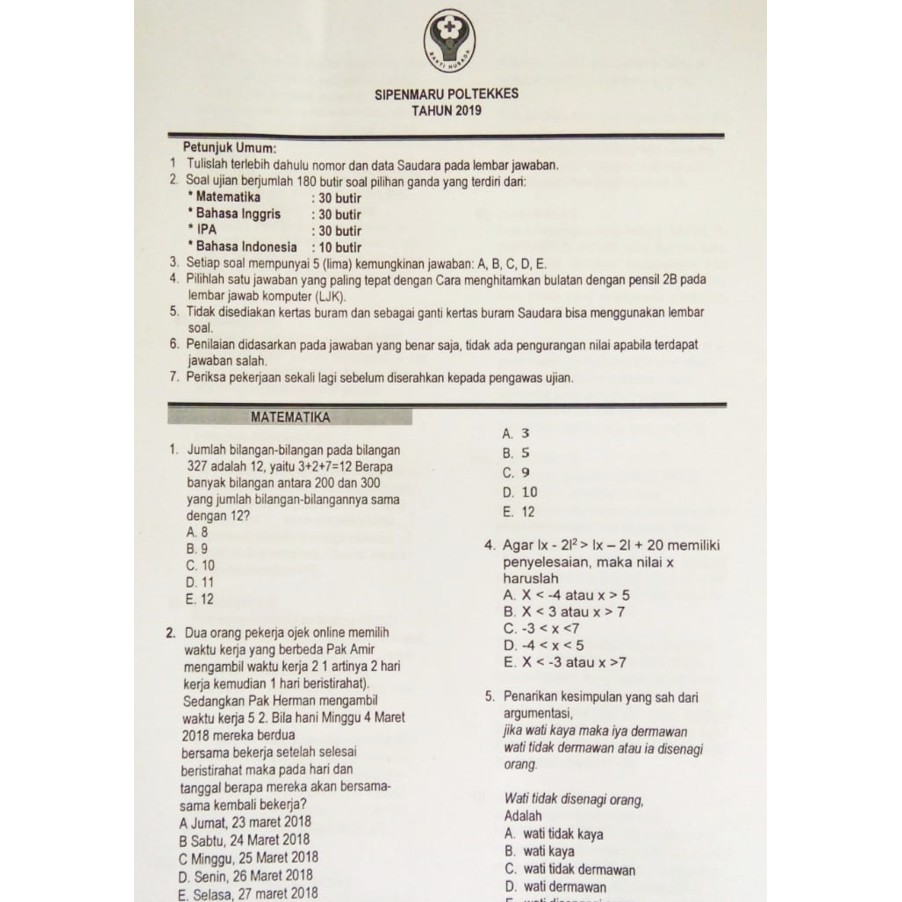 Tips mengerjakan tes ini yaitu anda harus memperbanyak perbendaharaan kosakata dan juga artinya. Untuk menjawab soal di atas yang perlu kita lakukan yaitu dengan mengamati variabel tetapnya terlebih dahulu. Buku ini sangat menarik dan bermanfaat untuk persiapan tes poltekkes 2020 nanti. Soal sipenmaru uji tulis poltekkes tahun 2017 2016 dan 2015 tes masuk poltekkes 2017 2016 dan 2015. Oleh karena itu berikut adalah contoh prediksi soal tes poltekkes 2018 soal sipenmaru poltekkes 2017 soal poltekkes 2016 dan soal poltekkes 2015. Kabar baiknya sudah ada buku soal sipenmaru poltekkes 2020 yang memuat contoh soal poltekkes 2019 2018 2017 2016 dan prediksi soal sipenmaru poltekkes 2020 dan pembahasannya.
