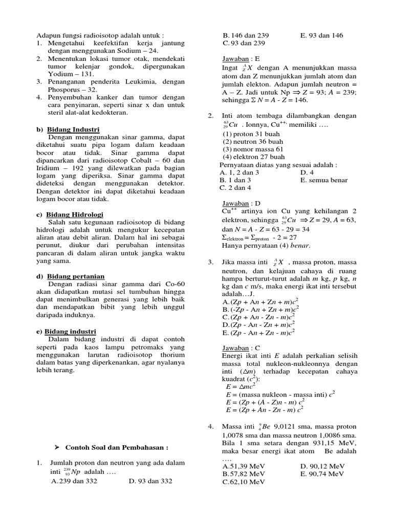 Contoh soal radioaktivitas dan pembahasannya contoh contoh soal radioaktivitas ini persamaan matematikanya ditulis dengan bahasa khusus tidak bisa dibaca dalam mobile version. Contoh soal radioaktif dan jawaban beserta pembahasan unsur radioaktif merupakan unsur yang dapat memancarkan radiasi secara spontanradiasi didefinisikan sejenis sinar tetapi memiliki energi yang besar dan daya tembus yang tinggi.