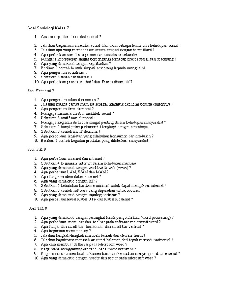 Soal sosiologi kelas 8. Nah mungkin ini lah yang dapat kami sampaikan mengenai ulasan tentang contoh soal sosiologi kelas 10 semoga apa yang sudah kami berikan ini dapat berguna dan bermanfaat sekian dari kami. Dengan adanya soal soal latihan ini diharapkan membantu siswai dalam memudahkan proses belajar mengajar sebelum menghadapi ujian yang sesungguhnya.